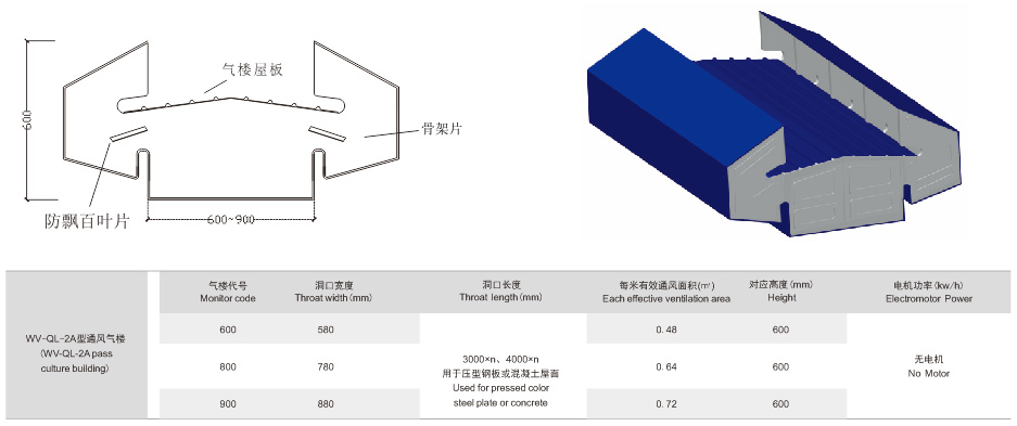 Characteristic: 1, low cost, good ventilation effect; 2, beautiful appearance, simple structure, Good waterproof effect; 3, light weight, does not increase the structural load; 4, ventilation lighting integration, strong integrity; 5, increase the opening and closing the valve plate, controlled ventilation; 6, add the louver sheet can prevent the phenomenon; 7, applicable to all kinds of plant, warehouse, workshop and other public buildings. |
